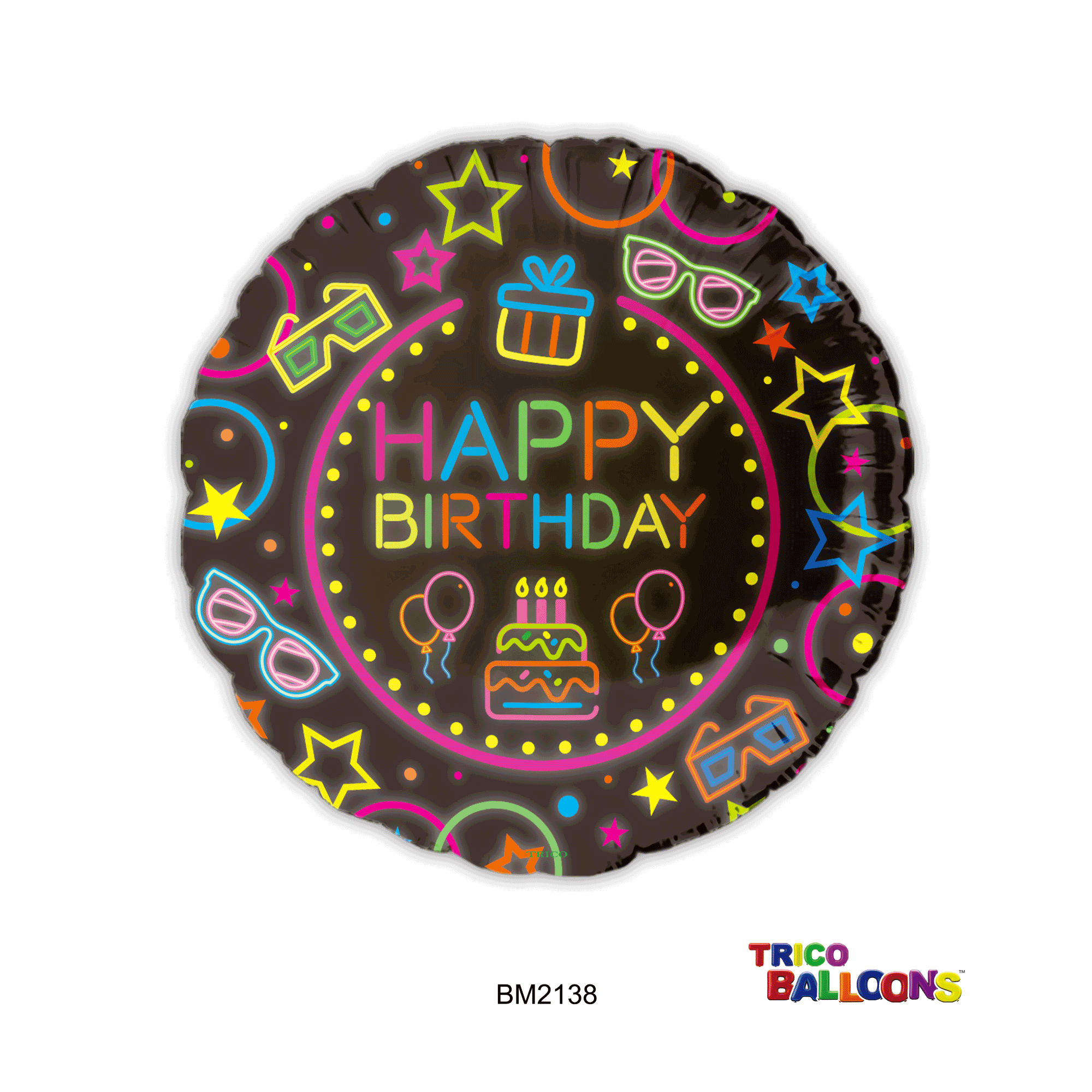 18" HAPPY BIRTHDAY FOIL BALLOON - BLACK Neon